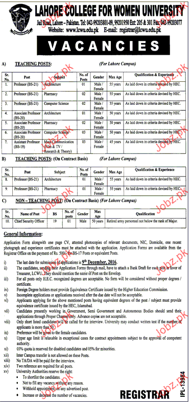Teaching Jobs Job in Lahore College For Women University