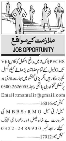 Todays New Jobs in Karachi