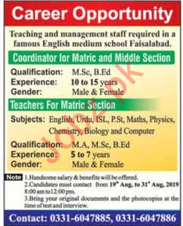 Latest English Medium School Teaching Posts Faisalabad 2025