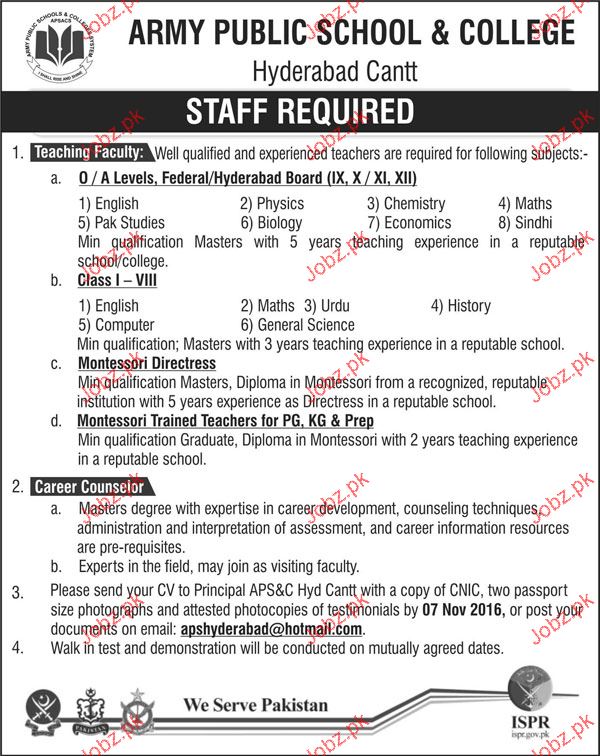 Teaching Staff Job In Army Public & College