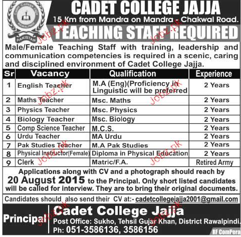 Latest Cadet College Teaching Posts Rawalpindi 2025
