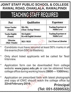 Teaching Staff Job in Joint Staff Public School & College