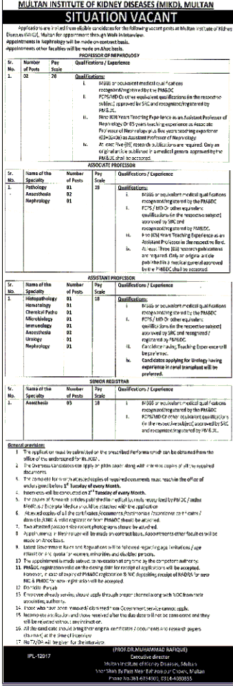Teaching Staff Job In Multan Institute Of Kidney Diseases