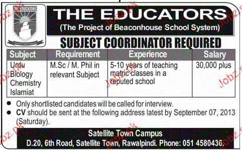 Latest Private Company Teaching Posts Rawalpindi 2025
