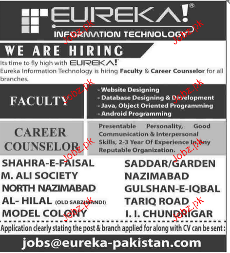 Apply as per details in job advertisement. Login to view further details of how to apply via https://www.jobz.pk online.