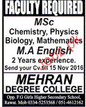 Latest Private Company Teaching Posts Rawalpindi 2025