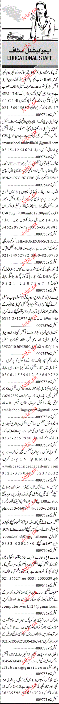 Teaching Staff are required in Karachi.