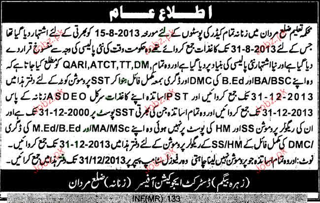 Latest Government Teaching Posts Peshawar 2025