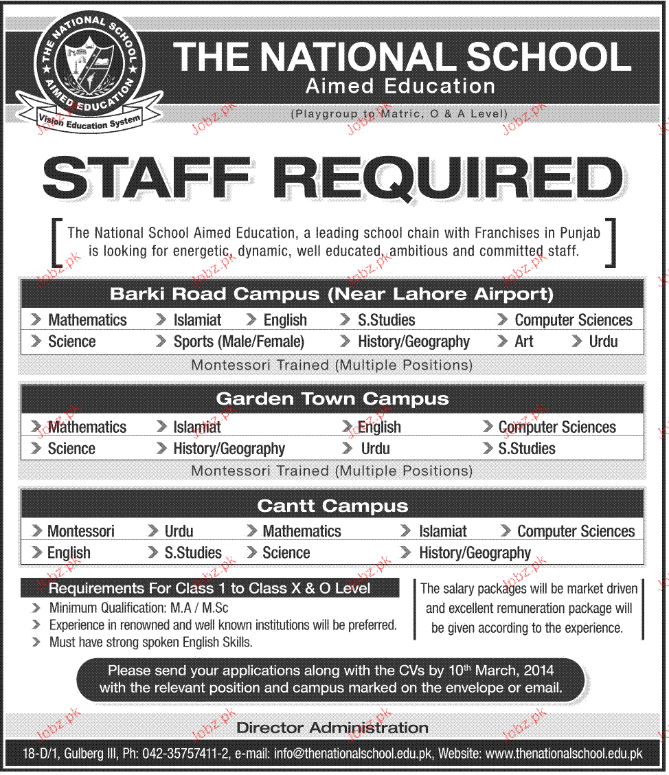 Latest Private Company Teaching Posts Lahore 2025