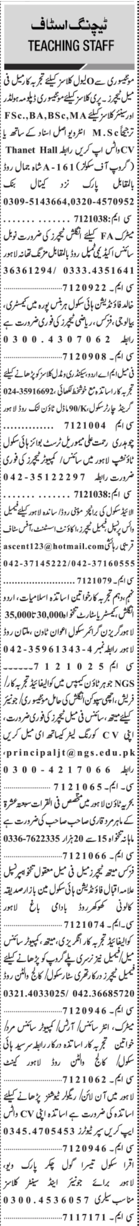 Educational Institute jobs advertisement dated about 8 August 2022 in daily Jang Newspaper invites application for the vacant post of islamiat teacher, physics teacher, maths teacher, assistant, english teacher, urdu teacher, accountant, computer teacher, teacher, chemistry teacher and bio teacher in Lahore, lahore Punjab Pakistan. Persons with Master, Bachelor, M.sc, B.ed and MA etc. education can apply.