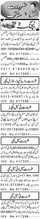 Private School is looking for candidates for following posts as per job advertisement published in daily Aaj Newspaper of January 3, 2023 for location Peshawar, peshawar Khyber Pakhtunkhwa KPK Pakistan: