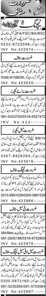 Private School is looking for candidates for following posts as per job advertisement published in daily Aaj Newspaper of August 7, 2023 for location Peshawar, peshawar Khyber Pakhtunkhwa KPK Pakistan: