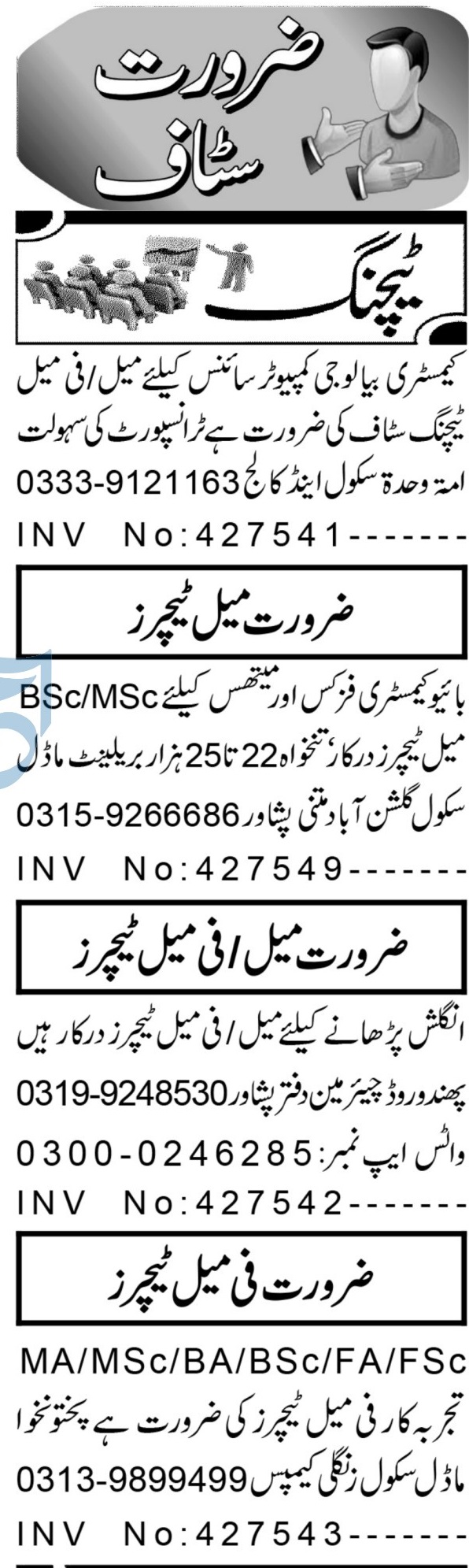 Latest Private School Teaching Posts Peshawar 2025