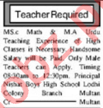 Apply as per details in job advertisement. Login to view further details of how to apply via https://www.jobz.pk online.