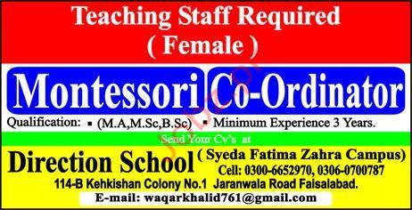 Latest Direction School Teaching Posts Faisalabad 2025