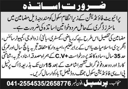 Latest PAC Foundation School Teaching Posts Faisalabad 2025