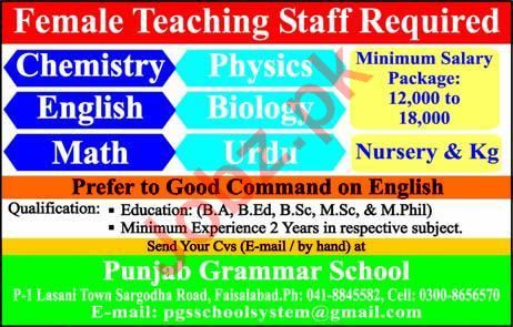 Latest Punjab Grammar School Teaching Posts Faisalabad 2025