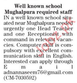 Teaching Staff Jobs Opportunity In Lahore 2017