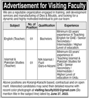 Latest Public Sector Organization Teaching Posts Karachi 2025