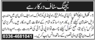Global Education Academy Rawalpindi, rawalpindi Punjab Pakistan invites applications from eligible candidates for the post of teaching staff as per advertisement of October 27, 2025 published in daily Jang Newspaper. Candidates with Master and Bachelor etc. educational background will be preferred.