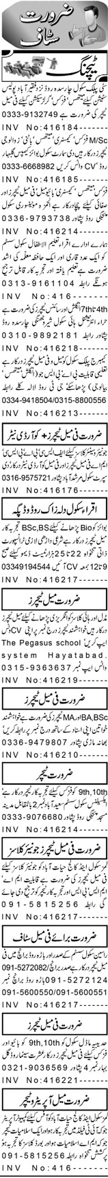 Vacant posts including botany teacher, female coordinator, english teacher, chemistry teacher, science teacher, islamiat teacher, maths teacher, female maths teacher, qari, female primary classes teacher, zoology teacher, mualima and female physics teacher are announced in Private School Peshawar, peshawar Khyber Pakhtunkhwa KPK Pakistan as per 2 December 2022 advertisement in daily Aaj Newspaper. Candidates with M.sc, MA and BA etc. educational background will be preferred.