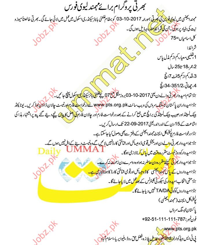 Apply as per details in job advertisement. Login to view further details of how to apply via https://www.jobz.pk online.