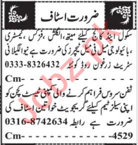 Teaching Staff & Sales Staff Jobs 2020 In Quetta