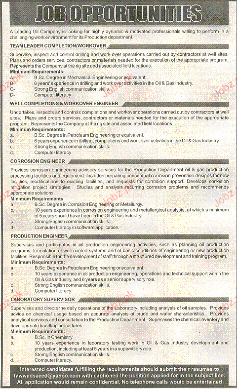 Apply as per details in job advertisement. Login to view further details of how to apply via https://www.jobz.pk online.