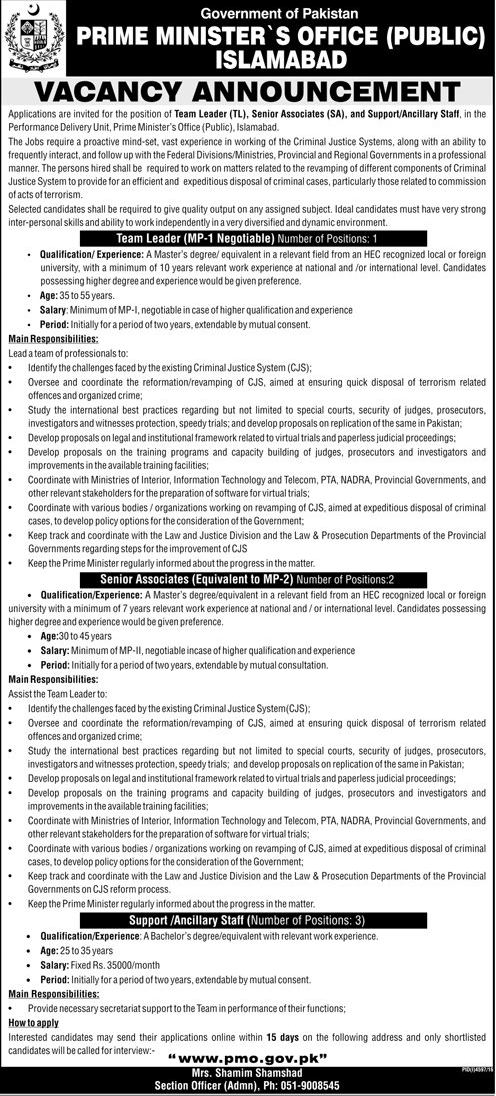 Apply as per details in job advertisement. Login to view further details of how to apply via https://www.jobz.pk online.