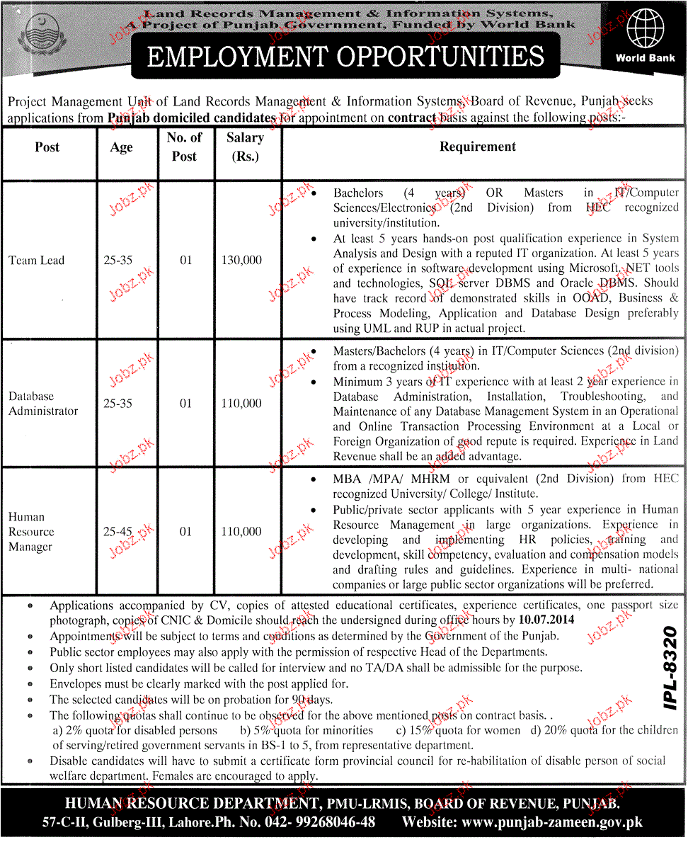 Apply as per details in job advertisement. Login to view further details of how to apply via https://www.jobz.pk online.