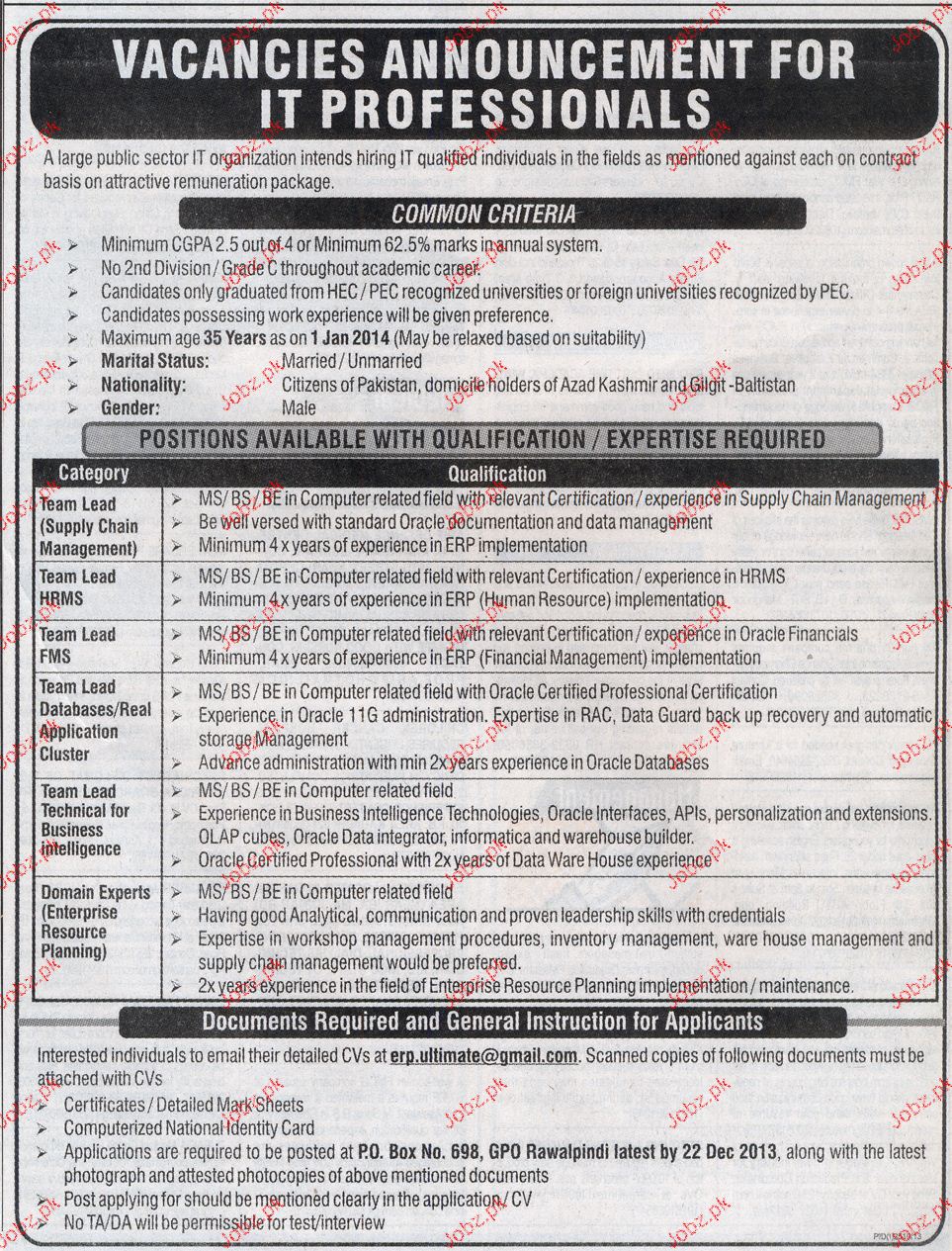 Apply as per details in job advertisement. Login to view further details of how to apply via https://www.jobz.pk online.
