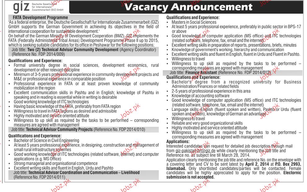 Apply as per details in job advertisement. Login to view further details of how to apply via https://www.jobz.pk online.