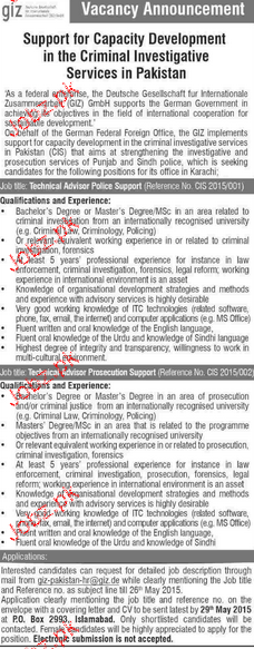 Apply as per details in job advertisement. Login to view further details of how to apply via https://www.jobz.pk online.