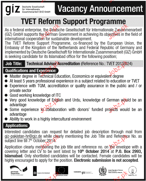 Apply as per details in job advertisement. Login to view further details of how to apply via https://www.jobz.pk online.