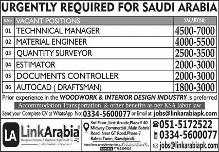 Latest Overseas jobs in Link Arabia Manpower Provicer & Overseas Employment Co in Industrial and others can be applied till 17 July 2025 or as per closing date in newspaper ad. Read complete ad online to know how to apply on latest Link Arabia Manpower Provicer & Overseas Employment Co job opportunities. Salary varies from 525000.