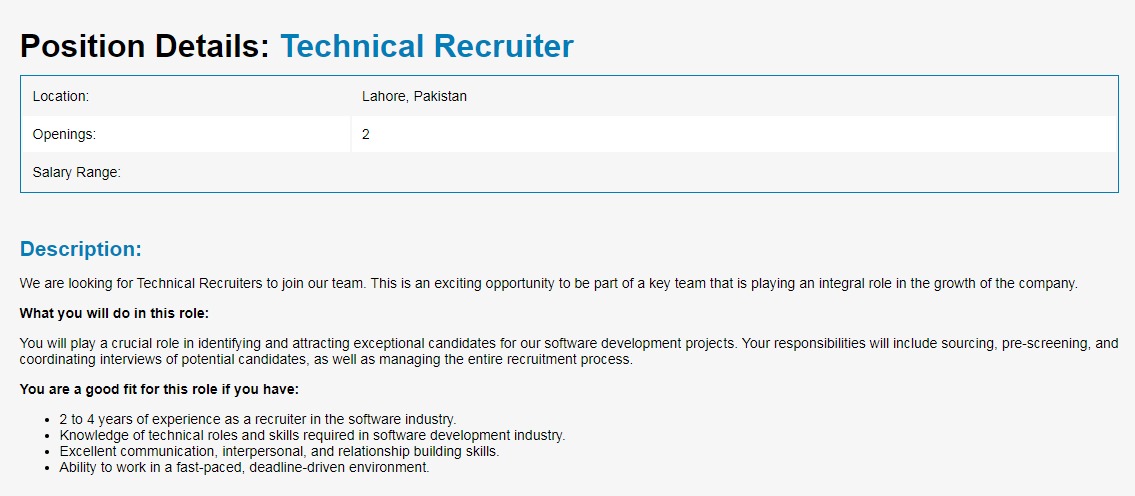 Intagleo Systems jobs advertisement dated about 7 February 2024 in daily Other Newspaper invites application for the vacant post of technical recruiter in Lahore, lahore Punjab Pakistan. Educational qualifications required Master and Bachelor etc.