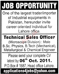 Technical Sales Officer Job Opportunity