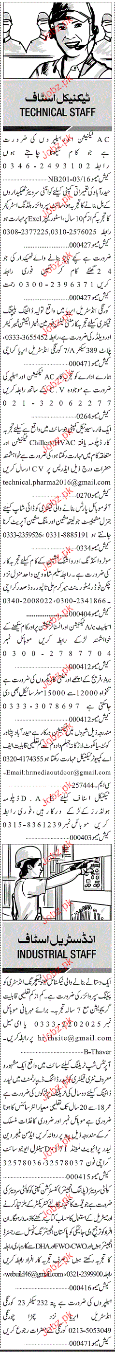 Technical Staff are required in Karachi.