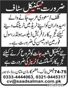 Apply as per details in job advertisement. Login to view further details of how to apply via https://www.jobz.pk online.