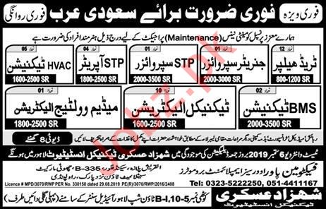 Latest Shahzad Askari Technical Institute Engineering Posts Saudi Arabia 2025