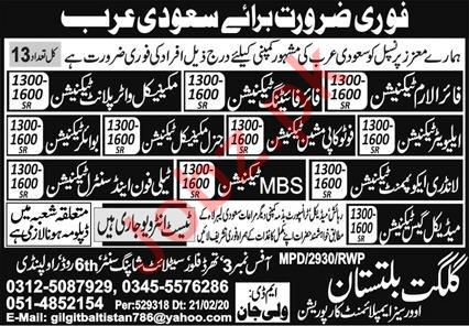 Experienced and technical personnel for the posts of Fire Alarm Technician, Fire Fighting Technician, Mechanical Water Plant Technician, Photocopy Machine Technician, General Mechanical Technician, Boiler Technician, MBS Technician, Telephone Technician, Central Technician and Medical Gas Technician required for oversea company in Saudi Arabia 2020.