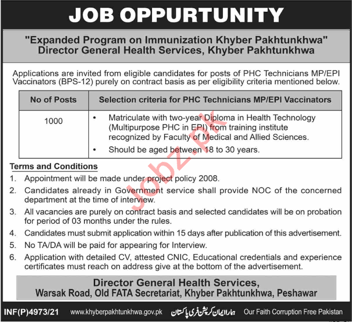 Latest Director General Medical Services Medical Posts Peshawar 2025