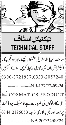 Private Company jobs advertisement dated about 22 October 2024 in daily Jang Newspaper invites application for the vacant post of fitter and electrician in Karachi, karachi Sindh Pakistan. Persons with DAE, Bachelor, Intermediate and Matric etc. education can apply.
