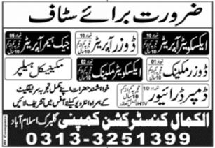 Al Kamal Construction Company Private Limited invites applications for job positions advertised in daily Jang dated 27 February 2022 for following vacancies in Islamabad, islamabad Islamabad Pakistan.