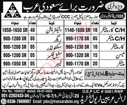 Trans Arabian Travel & Trade Company is looking for candidates for following posts as per job advertisement published in daily Express Newspaper of July 31, 2022 for location Saudi Arabia, saudi arabia Saudi Arabia: