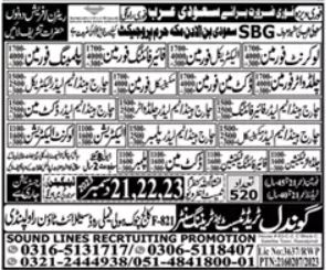 Latest Overseas jobs in Sound Lines Recruiting Promotion in Labor and others can be applied till 23 December 2023 or as per closing date in newspaper ad. Read complete ad online to know how to apply on latest Sound Lines Recruiting Promotion job opportunities. Overtime is allowed. Facilities like transport, medical and accommodation may be provided.