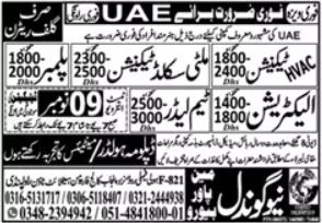 New Gondal Manpower Bureau invites applications for job positions advertised in daily Dunya dated 8 November 2023 for following vacancies in UAE, uae UAE.