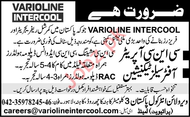 Latest Varioline Intercool Pakistan Pvt Limited Engineering Posts Lahore 2025