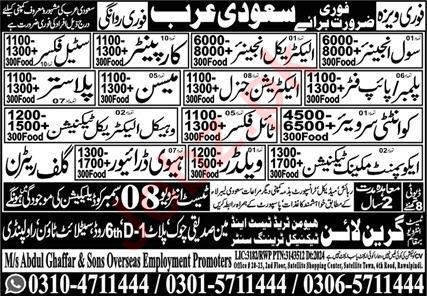 Vacant posts including Plaster, Engineer, Mason, Pipe Fitter, Heavy Driver, Steel Fixer, Vehicle Electrical Technician, Tile Fixer, Electrician General, Equipment Mechanic Technician, Civil Engineer, Quantity Surveyor, Electrical Engineer, Plumber, Welder, Electrician and Carpenter are announced in Green Line Human Trade Test & Technical Training Center Dammam, dammam Saudi Arabia as per 8 December 2024 advertisement in daily Express Newspaper. Candidates with DAE, Matric, Middle, Others, Intermediate, Bachelor and Primary etc. educational background will be preferred.