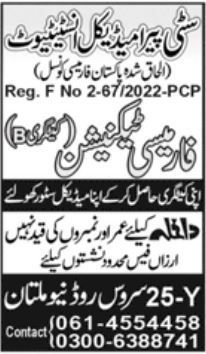 City Paramedical Institute CPI admissions 2023 for Pharmacy Technician has been announced. Students can enroll for admissions in City Paramedical Institute CPI Multan Punjab Pakistan for academic year 2023 to continue campus based or online education in Medical College. Eligible candidates for admissions in Diploma can apply as per Private institute criteria and before closing date 7 June 2023 after reading advertisement online. Read newspaper ad for exact details.